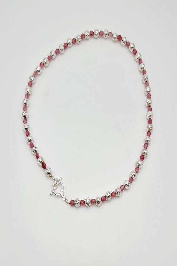Gargantilla de bolitas de Lava bañadas en Plata y Jade rosa Mide 40/42cm. Bola 6mm