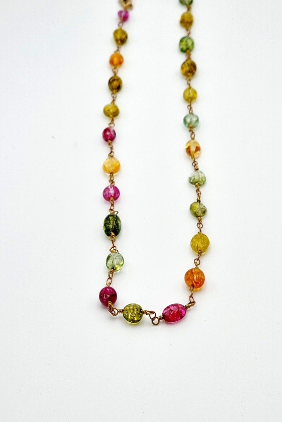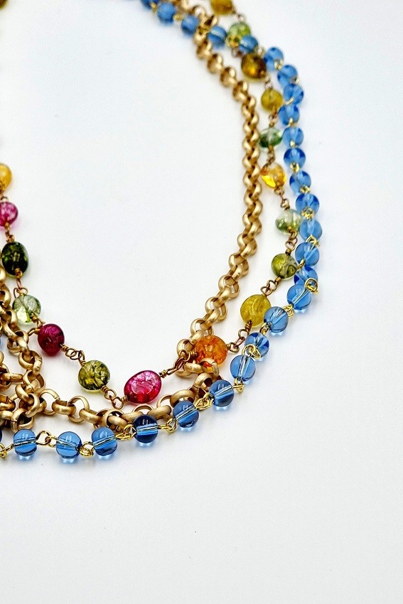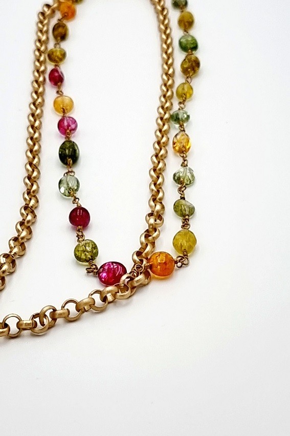 Cadena de latón dorado con piedras naturales.